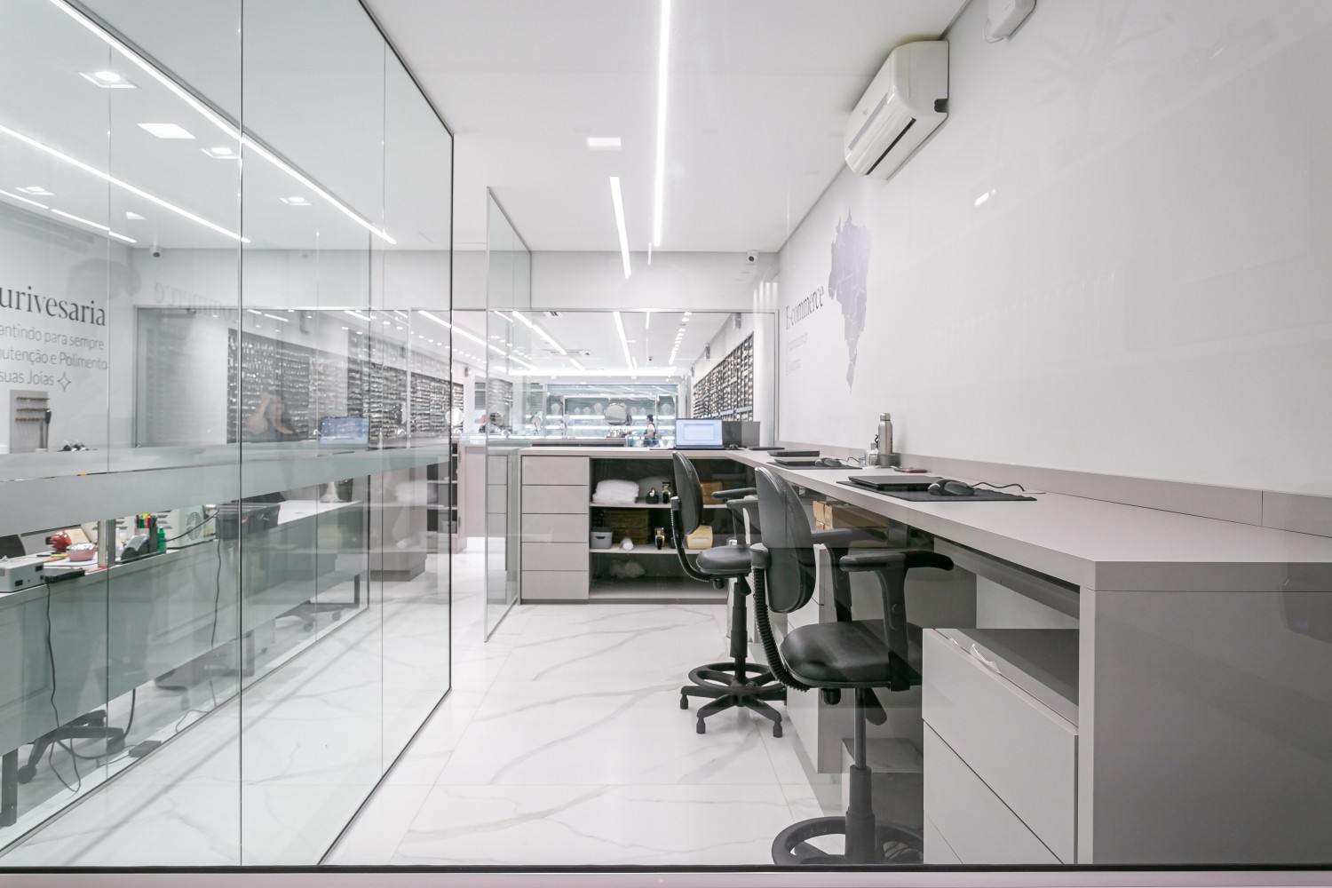 O novo espaço da Só Prata nasce da vontade de unificar a empresa em um único ambiente, trazendo mais dinamismo, elegância e qualidade de vida para clientes e equipe. Cada detalhe foi pensado para criar uma experiência única na cidade, que convida ao movimento, à descoberta e ao encantamento.