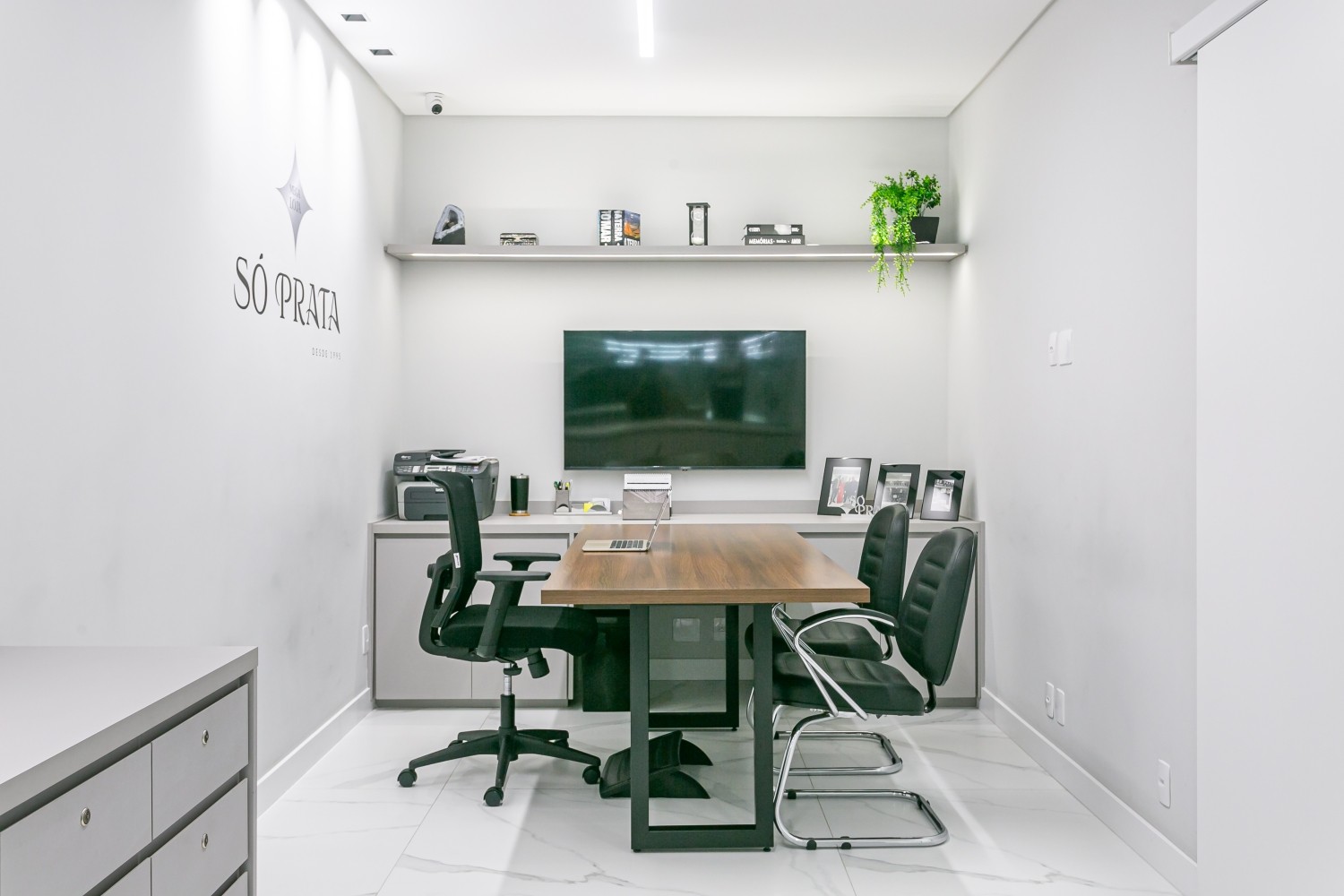 O novo espaço da Só Prata nasce da vontade de unificar a empresa em um único ambiente, trazendo mais dinamismo, elegância e qualidade de vida para clientes e equipe. Cada detalhe foi pensado para criar uma experiência única na cidade, que convida ao movimento, à descoberta e ao encantamento.